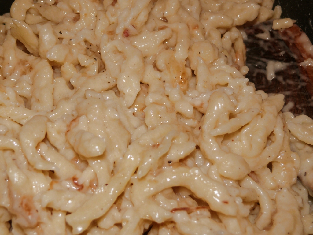 Nachdem ich zum Geburtstag, der nun auch schon wieder ein paar Tage zurück liegt, ein Spätzlesbrett bekommen hatte, kommt hier nun endlich auch ein Spätzle-Rezept. Käsespätzle sind zwar nicht unbedingt frühsommerliche Diätkost, aber trotzdem genial lecker.