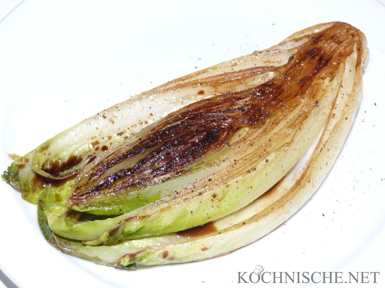 OK, bevor ich hier mangels Zeit und Muße Ewigkeiten nichts neues veröffentliche, eine Kleinigkeit für Zwischendurch. Eine ähnliche Zubereitung von Chicorée hat mich vor einiger Zeit mal in einer Gordon Ramsay-Sendung angesprungen und begeistert. Heute habe ich dann mal den Chicorée, der mich so freundlich angeguckt hat mitgenommen und es ausprobiert. Und: Super. Eine tolle Beilage. Leicht herb, ansonsten wenig aufdringlich und hervorragend als einfache und leichte Beilage zu Gerichten mit sanftem Eigengeschmack oder süßer Note. Mjam.