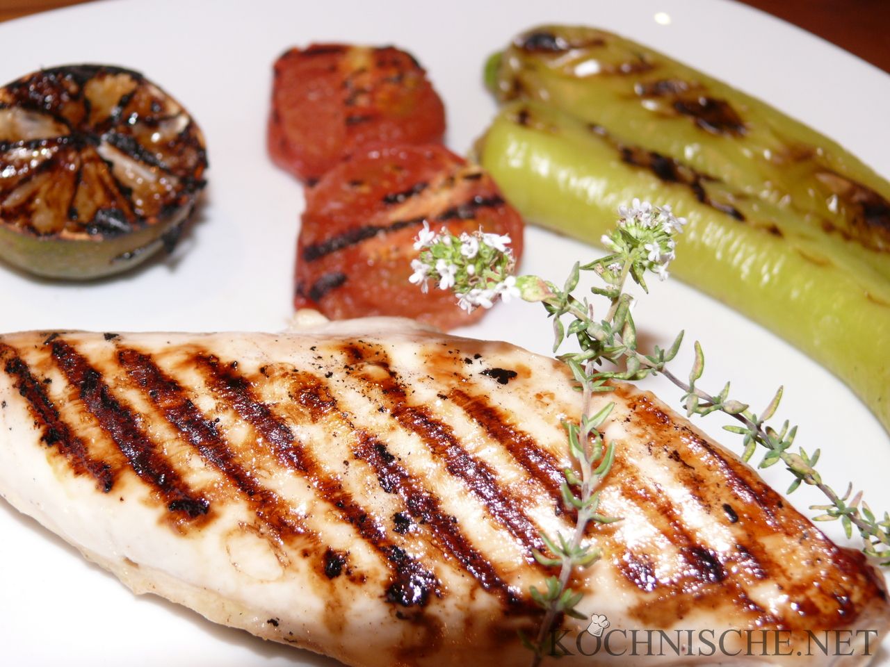 Heute gibt’s einen leckeren Sommerabend-Quickie. Für Fitnessbewusste Winterspeckrestverlierer ist das auch hübsch low-carb. Vor allem aber: Es ist lecker! Naja, und ich muß meine neue Le Creuset Grillplatte ein bisschen benutzen, damit sie sich amortisiert. Natürlich könnte man das Ganze auch auf den Holzkohle-Kugelgrill oder in den Smoker legen.