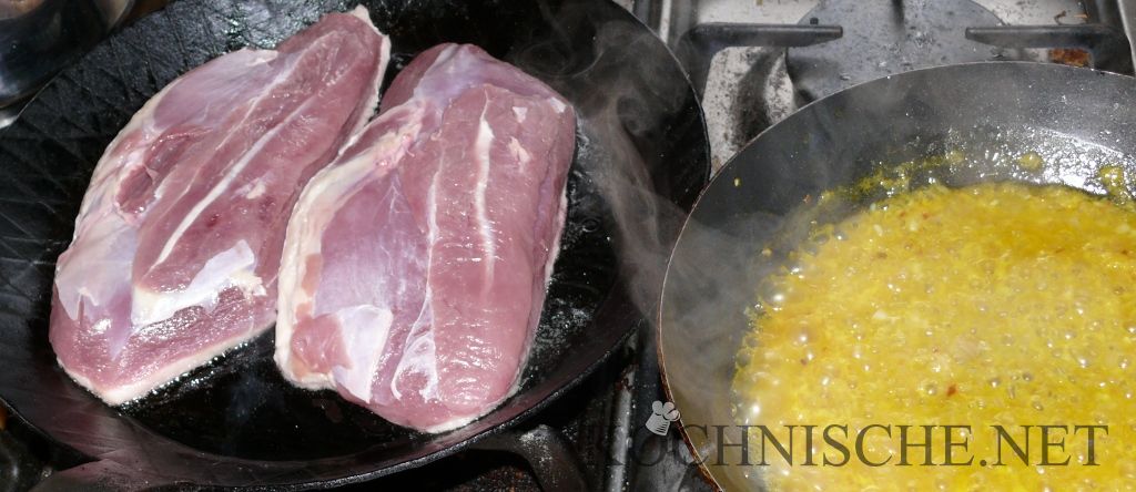 Das Fleisch etwa eine halbe Stunde vor dem Kochen aus dem Kühlschrank nehmen, damit es nicht zu kalt ist. Gründlich waschen und mit Küchenkrepp trockentupfen. Dann die Haut mit einem scharfen Messer einschneiden. Dabei darauf achten, nicht ins Fleisch zu schneiden!