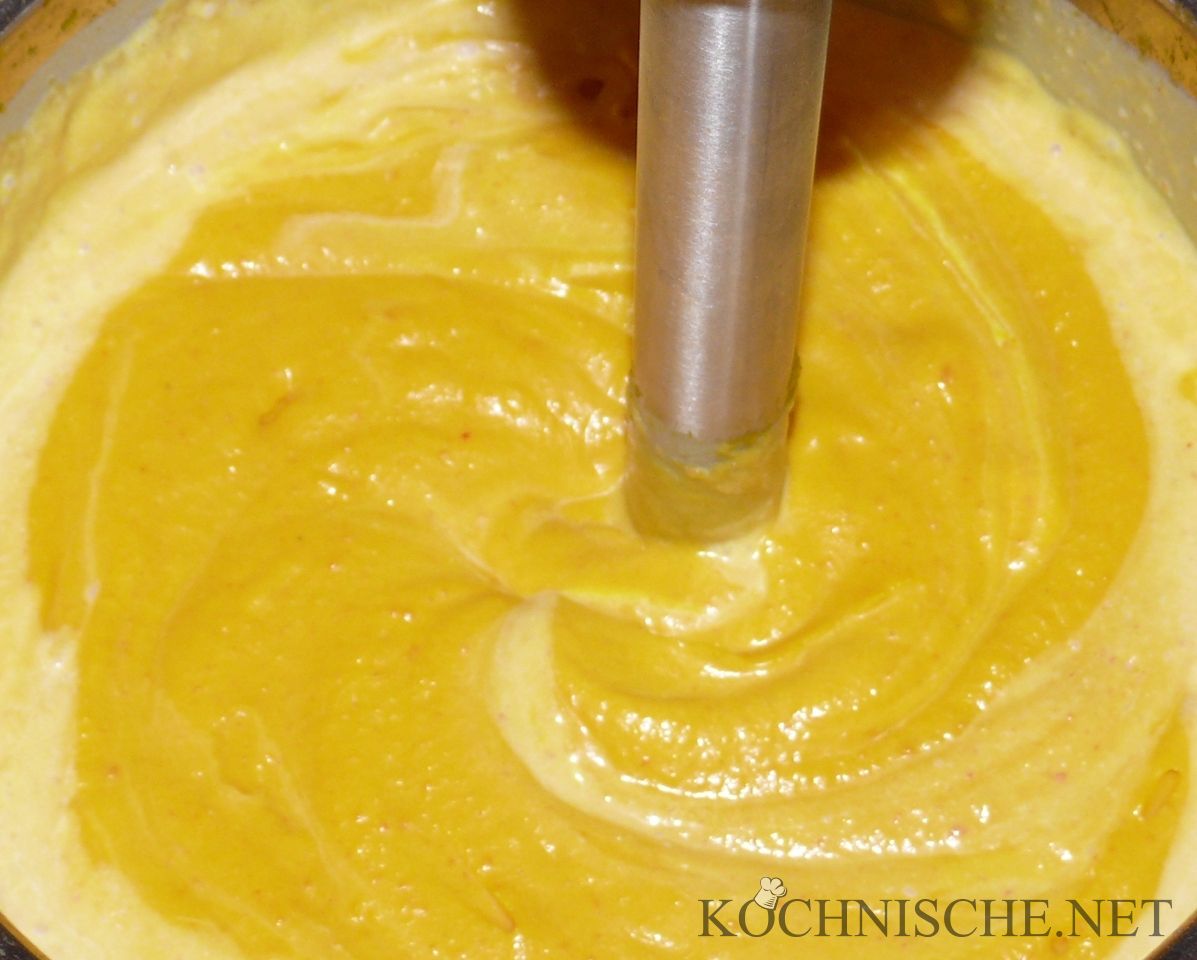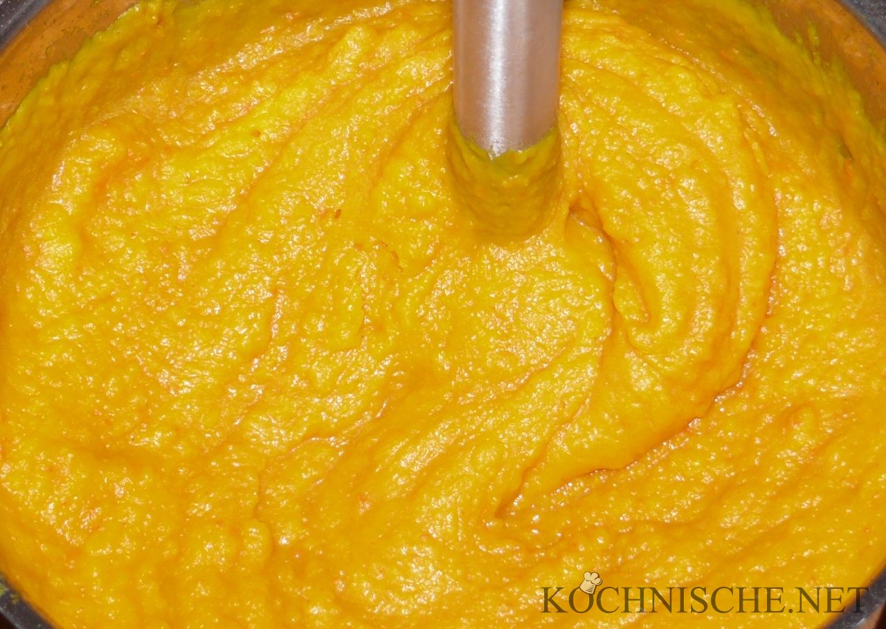 Trari, Trara, der Herbst ist da. Und mit ihm auch der Kürbis als solcher – der Hokaido im Speziellen. Nachdem im Supermarkt jetzt große Schilder stehen, die erklären, daß Hokaidos so toll sind, weil man sie nicht schälen muß, sind die Teile wohl recht beliebt und leicht zu bekommen. Das Exemplar rechts kommt aus eigenem Anbau. Was macht man nun mit dem Kürbis? Klar: Kürbissuppe. Damit tut man ihm zwar irgendwie etwas Unrecht, weil man auch eine Menge anderer leckerer Sachen aus Kürbis machen kann, trotzdem ist Kübissuppe eine meiner “Lieblingsverwendungen”. Lecker, leicht zubereitet, günstig – toll!
