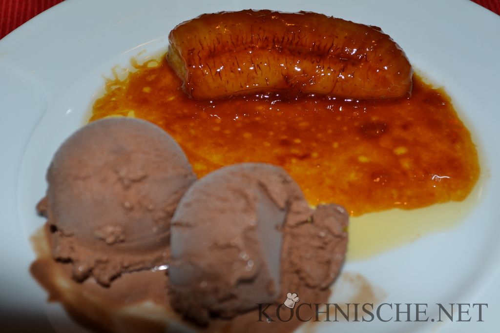 Ein Dessert für das Weihnatsessen zu finden war gar nicht so einfach. Hier und da habe ich nach Ideen gesucht oder mal herumgefragt – “Was ist Dein Lieblingsdessert?”. Michael, der Rotkohlhasser, hat schließlich gebackene Bananen mit Chili vorgeschlagen. Guute Idee! Und dazu gab’s noch Schoko-Chili-Eis. Wunderbar. Grandios. Gigantisch. Toll! Und hier ist er nun endlich – der 5. und letzte Gang meines Weihnachtsmenüs! (Schmeckt auch nach Weihnachten noch!)
