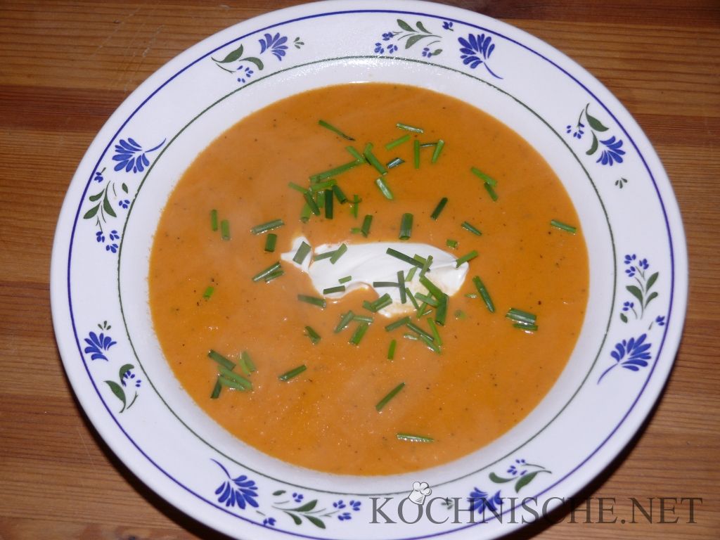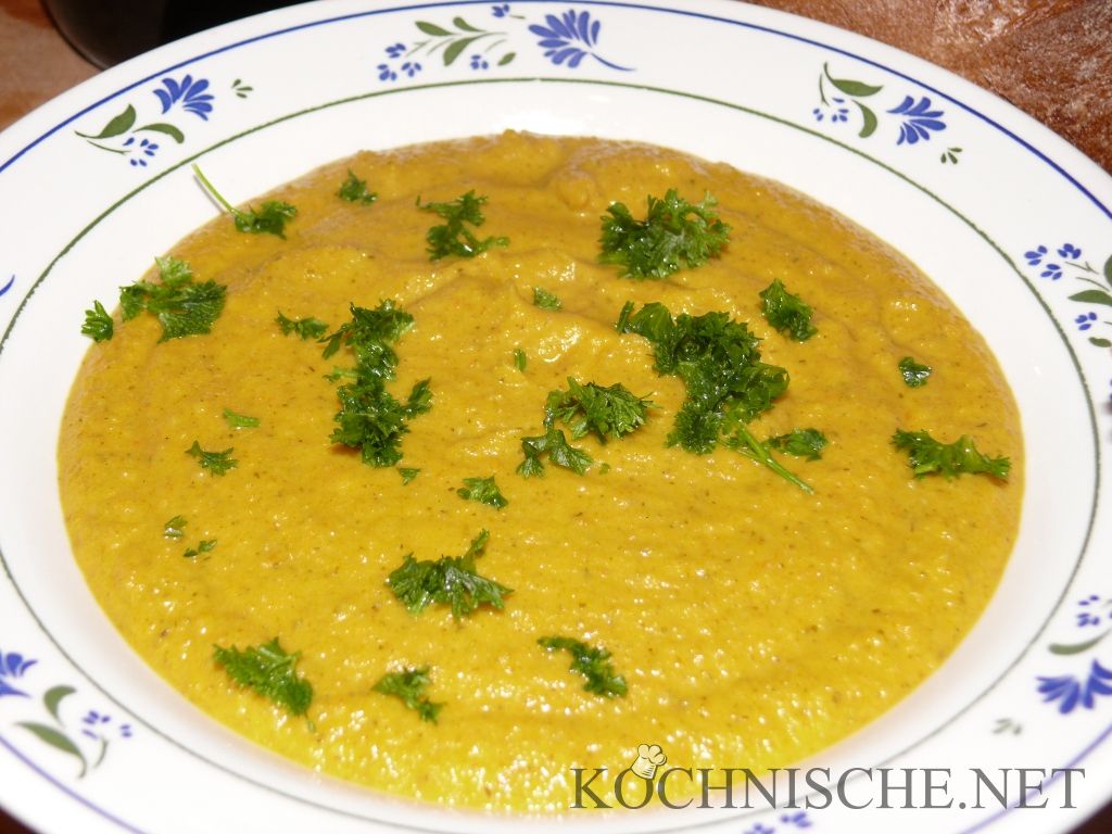 Trari, Trara, der Herbst ist da. Und mit ihm auch der Kürbis als solcher – der Hokaido im Speziellen. Nachdem im Supermarkt jetzt große Schilder stehen, die erklären, daß Hokaidos so toll sind, weil man sie nicht schälen muß, sind die Teile wohl recht beliebt und leicht zu bekommen. Das Exemplar rechts kommt aus eigenem Anbau. Was macht man nun mit dem Kürbis? Klar: Kürbissuppe. Damit tut man ihm zwar irgendwie etwas Unrecht, weil man auch eine Menge anderer leckerer Sachen aus Kürbis machen kann, trotzdem ist Kübissuppe eine meiner “Lieblingsverwendungen”. Lecker, leicht zubereitet, günstig – toll!
